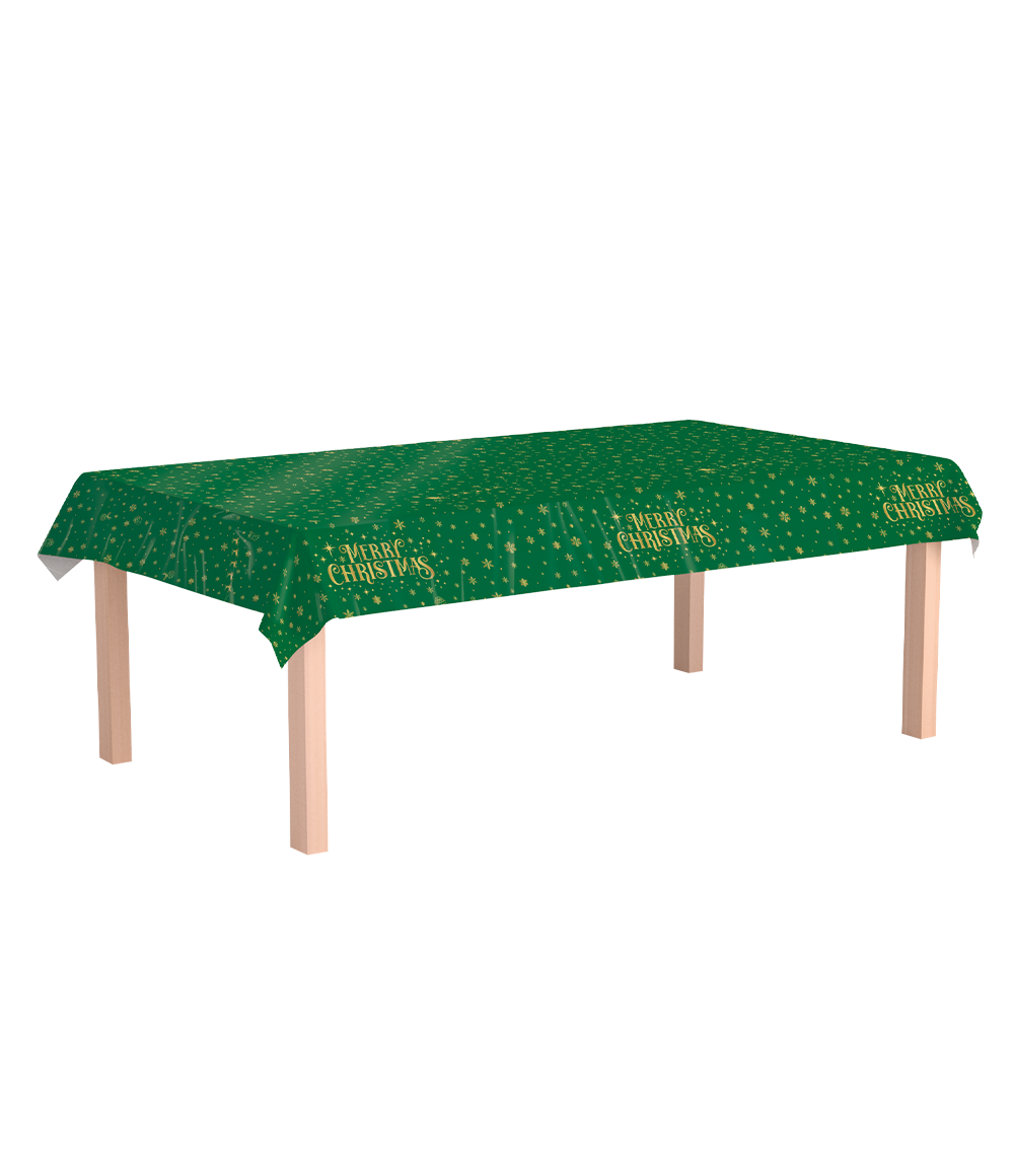 Crea un acogedor y cálido ambiente navideño con este festivo Mantel Feliz Navidad en verde, rematado con detalles dorados. Decorado con alegres motivos navideños, es ideal para la cena de Navidad, el brunch o las copas.