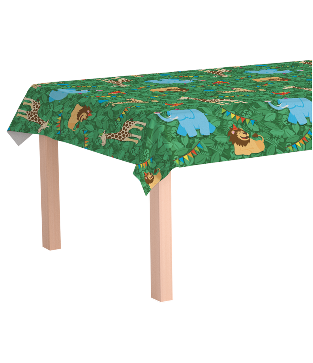 ¡Dale vida a tu mesa de fiesta con este alegre mantel en tema Jungla! De un vistazo puedes crear un ambiente juguetón y aventurero lleno de animales tropicales y vegetación, perfecto para fiestas infantiles, fiestas temáticas o una fiesta de verano. Combina el mantel con los platos, tazas, servilletas y adornos a juego de la misma serie para una fiesta Jungle con mucho estilo.