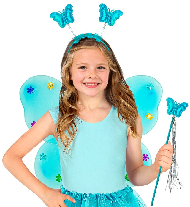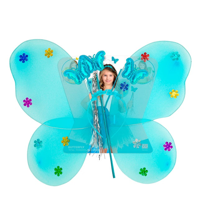 Deja que los niños se transformen en una encantadora mariposa con este completo conjunto azul, perfecto para fiestas de disfraces, eventos temáticos o juegos de rol imaginativos.