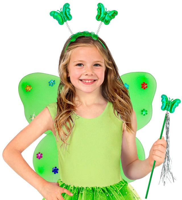 Deja que los niños se transformen en una encantadora mariposa con este completo conjunto verde, perfecto para fiestas de disfraces, eventos temáticos o juegos de rol imaginativos.