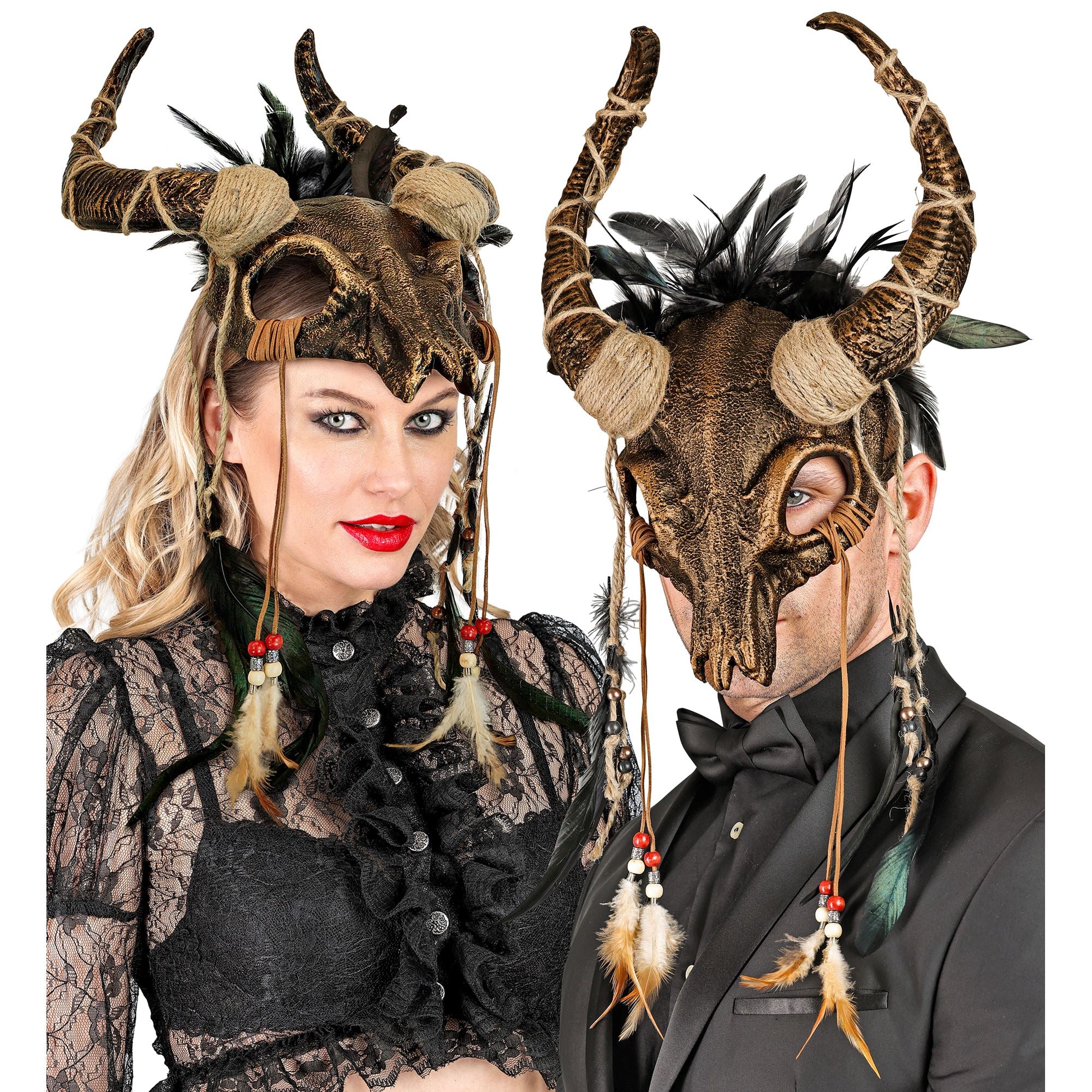 Máscara de Halloween Calavera con plumas