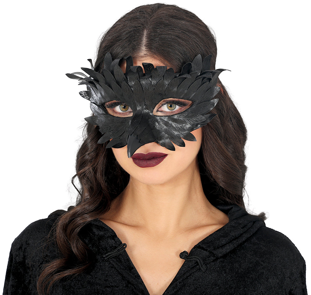 Añade un toque misterioso y elegante a tu look de disfraz con esta máscara de ojos negra, rematada con bonitas plumas. Perfecta para fiestas, carnaval o Halloween.