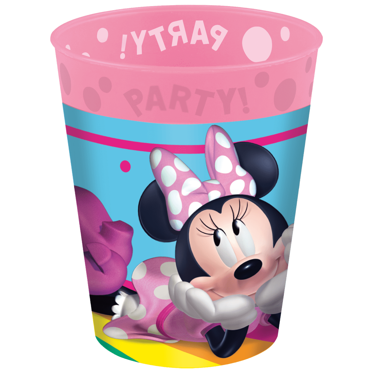Alegres vasos reutilizables con un dulce estampado de Minnie Mouse. Ideales para fiestas infantiles, fiestas de disfraces o para uso diario. La resistente calidad del plástico garantiza que los vasos puedan utilizarse varias veces.