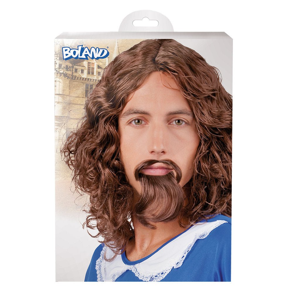 Peluca Marrón Mosquetero Con Bigote Y Barba
