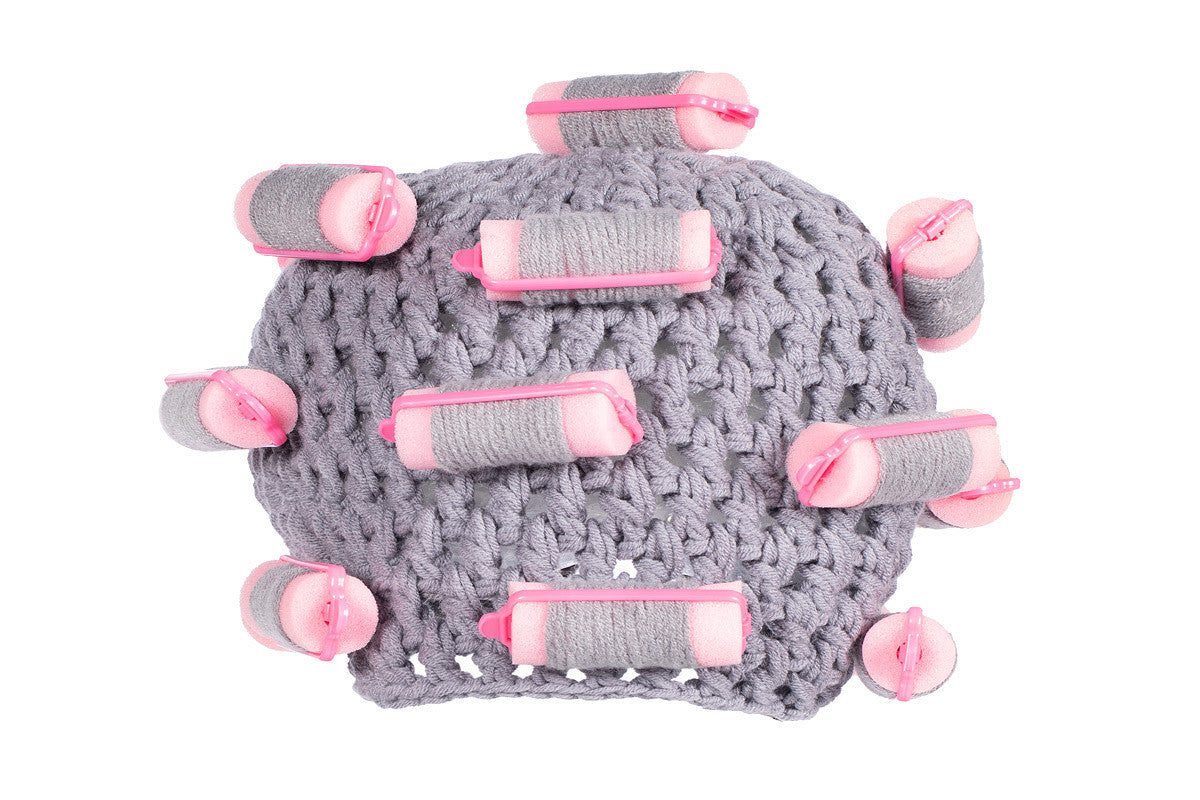 Leuke muts met krulspelden in grijs en roze. Perfect als accessoire voor themafeesten, verkleedpartijen of winterse outfits.