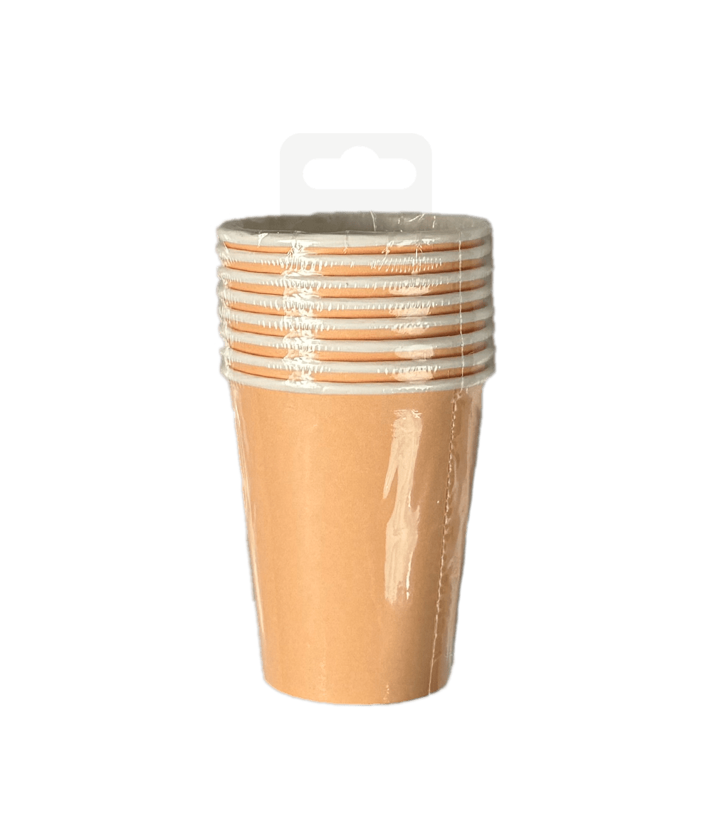 Los Vasos - Naranja pastel son los artículos de decoración perfectos en una fiesta cuyo tema sea el color naranja pastel. Estas tazas miden 8,5 x 7 cm, van embaladas de 8 en 8 y combinan perfectamente con los demás artículos de color naranja pastel, como el confeti, las servilletas, los platos, los manteles, las cajas de aperitivos y la línea de banderines. Presenta estos artículos juntos para que al cliente le quede claro de inmediato en qué consiste esta colección. Estos vasos son de papel, por lo que son ecológicos