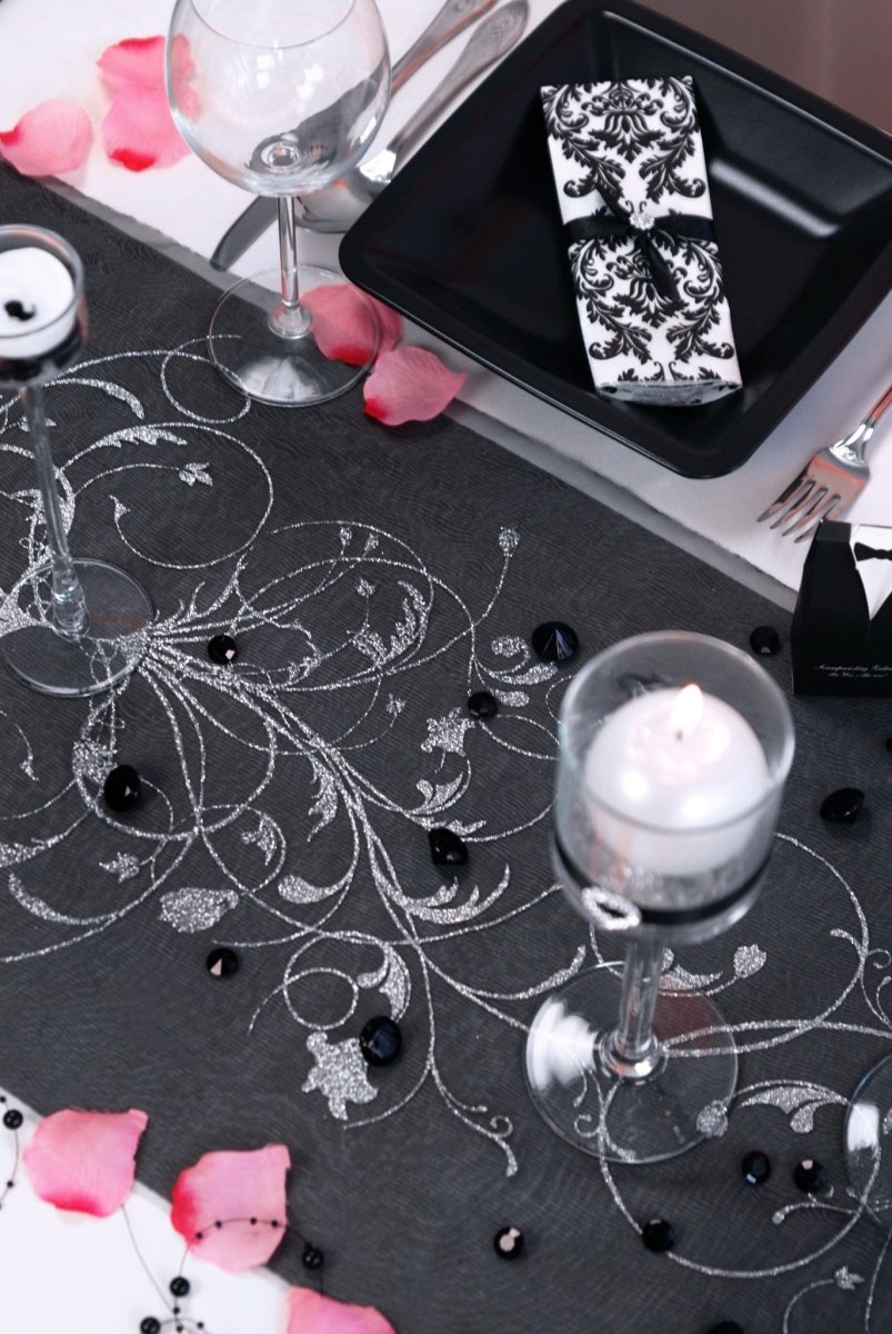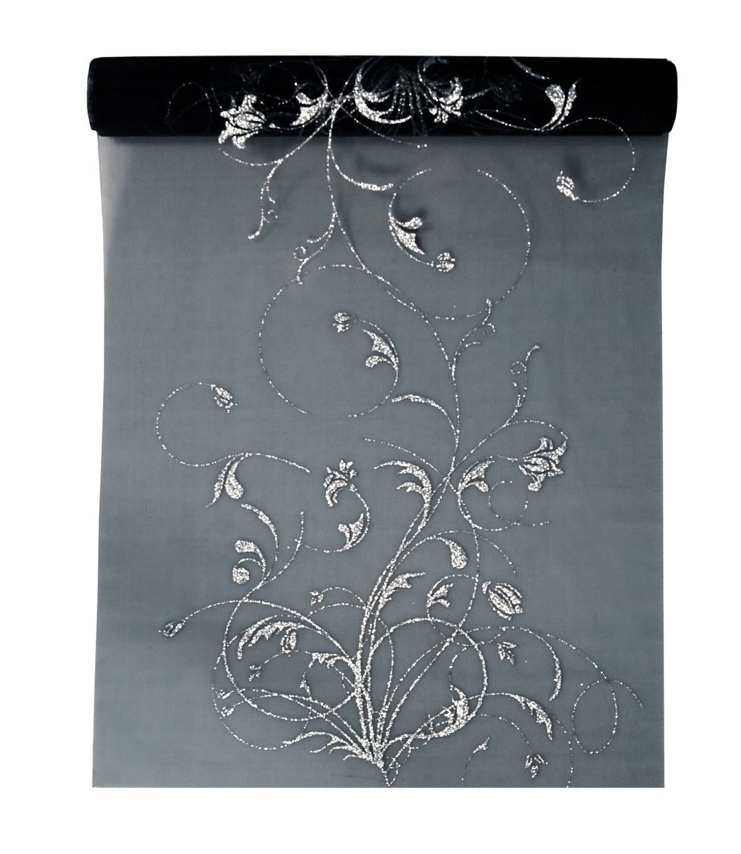 Tela Organza Negra Flores Plateadas 36cm 9m