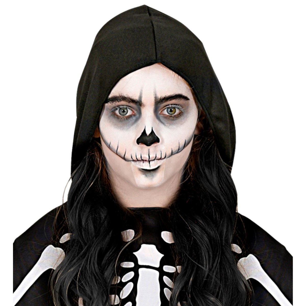 Completa tu look de Halloween o de disfraz con esta pintura facial negra. Perfecta para maquillajes espeluznantes, fiestas temáticas, Halloween o carnaval.