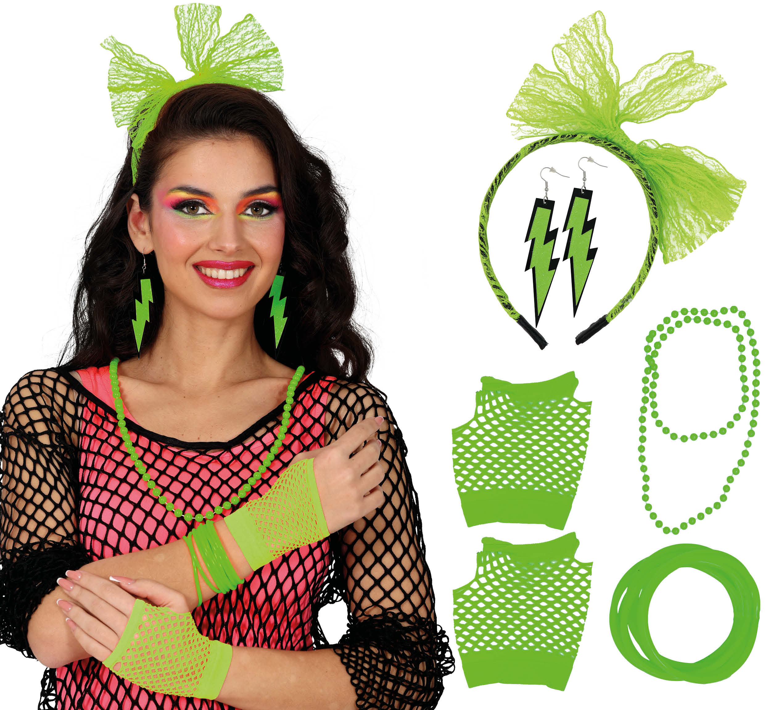 Juego de accesorios Neón 80S Verde Brillante 5 piezas