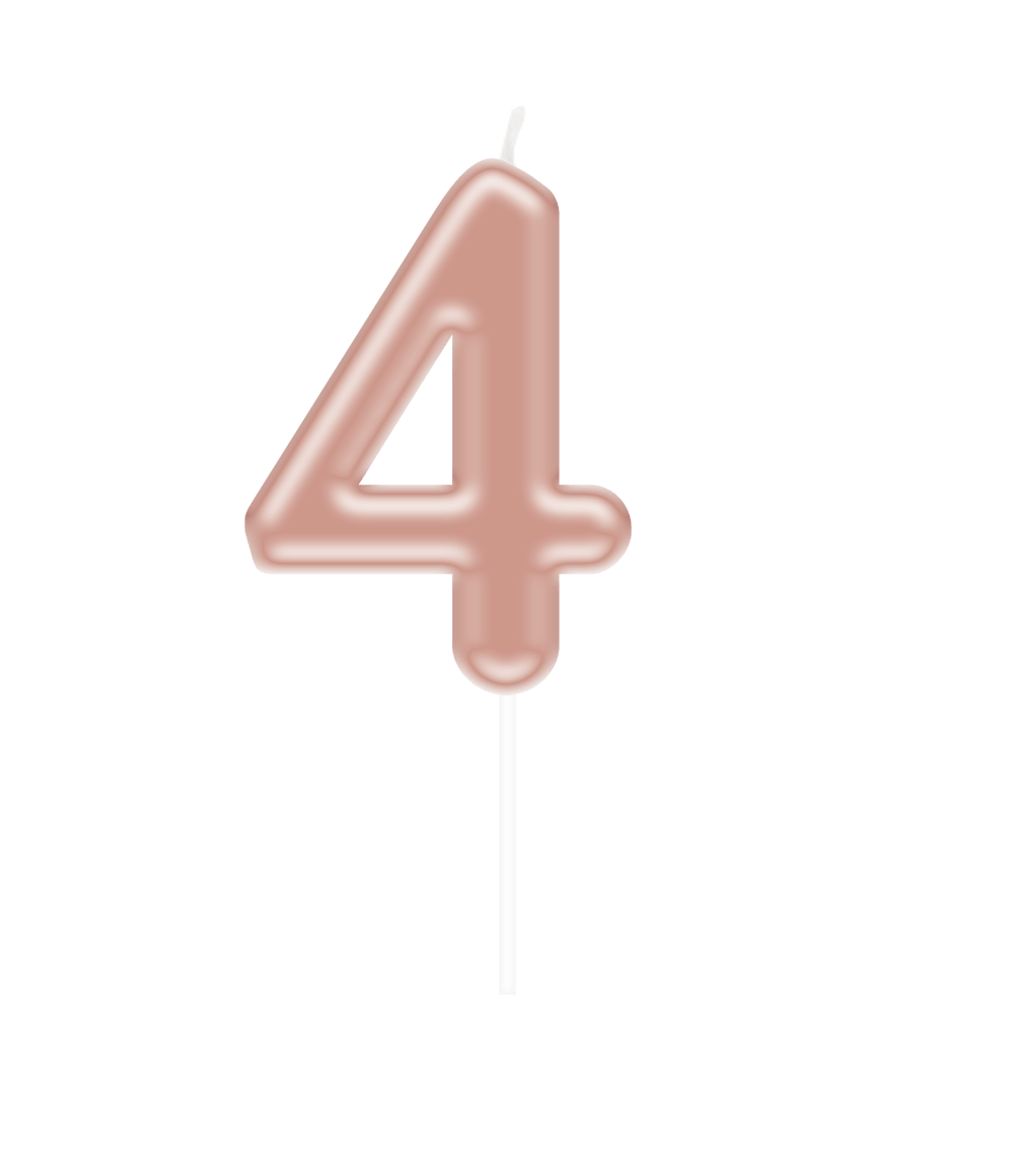 Celebra cada hito con estilo con esta vela número "4"de oro rosa. Perfecta para marcar edades, números de aniversario u otras ocasiones especiales. El brillante color oro rosa hace que la vela destaque en cualquier tarta o cupcake.