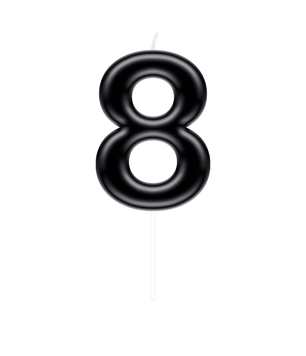 Celebra cada hito con estilo con esta vela numérica negra "8". Perfecta para marcar edades, números de aniversario u otras ocasiones especiales. El color negro hace que la vela destaque en cualquier tarta o cupcake.