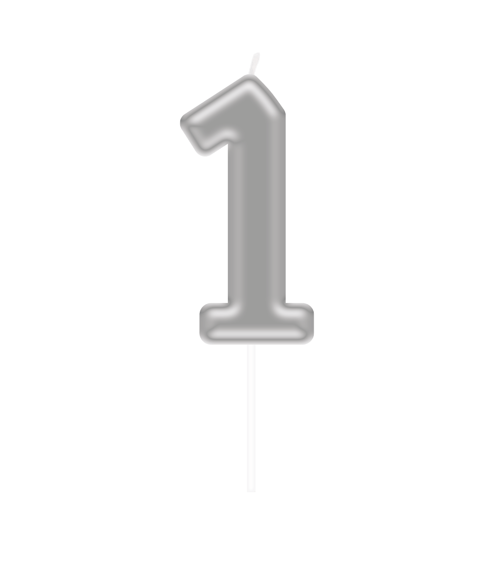 Celebra cualquier hito con estilo con esta vela número "1"plateada. Perfecta para marcar edades, números de aniversario u otras ocasiones especiales. El color plateado brillante hace que la vela destaque más en cualquier tarta o cupcake.