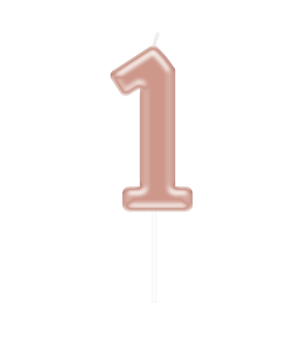 Celebra cada hito con estilo con esta vela número "1"de oro rosa. Perfecta para marcar edades, números de aniversario u otras ocasiones especiales. El brillante color oro rosa hace que la vela destaque en cualquier tarta o cupcake.