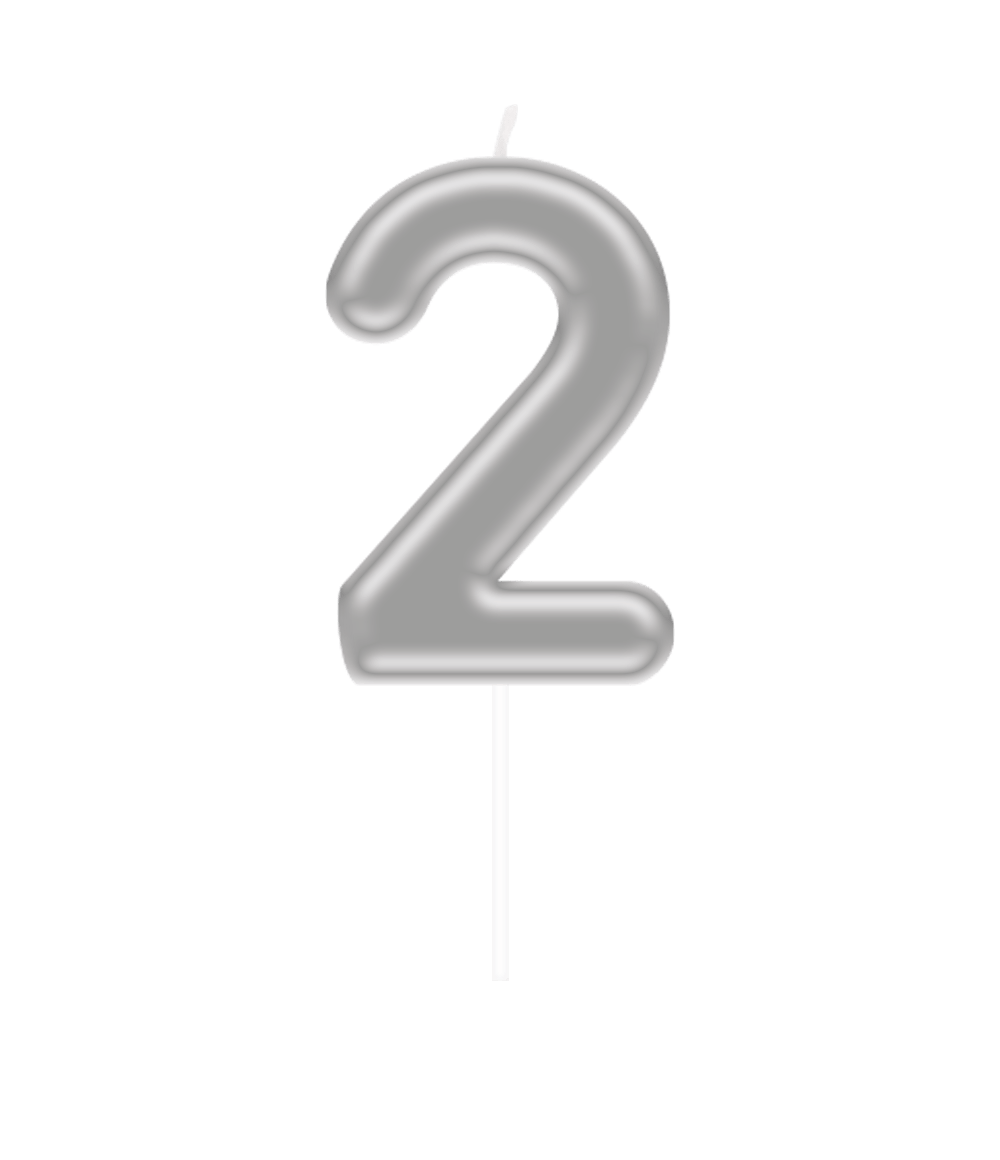 Celebra cada hito con estilo con esta vela número plateado "2". Perfecta para marcar edades, números de aniversario u otras ocasiones especiales. El color plateado brillante hace que la vela destaque en cualquier tarta o cupcake.