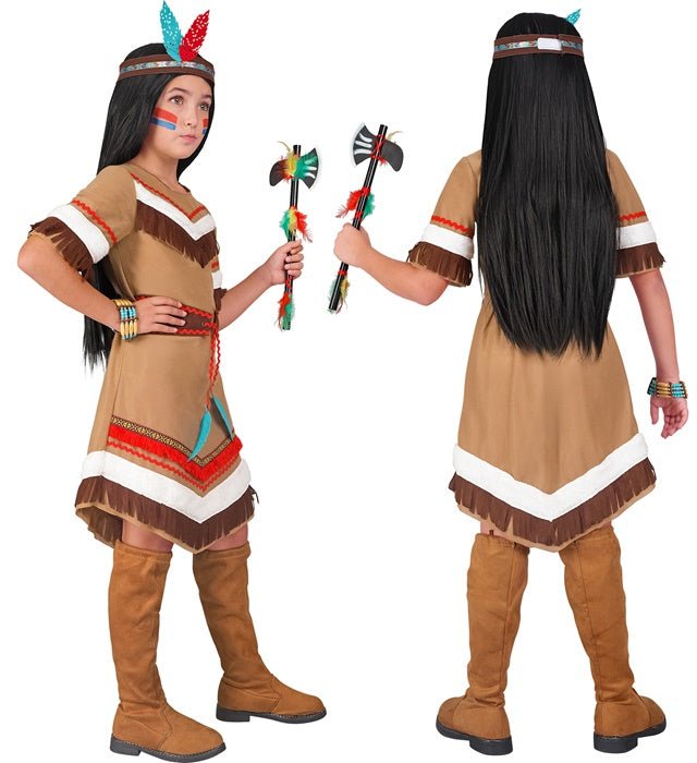 Métete en el papel de una india con este disfraz de color marrón. El conjunto incluye un vestido con cinturón y una cinta para el pelo con plumas a juego, completando tu look de la cabeza a los pies. Ideal para fiestas temáticas, fiestas de disfraces o representaciones escénicas. El pack contiene 1 disfraz de indio que incluye vestido con cinturón y cinta para el pelo con plumas.