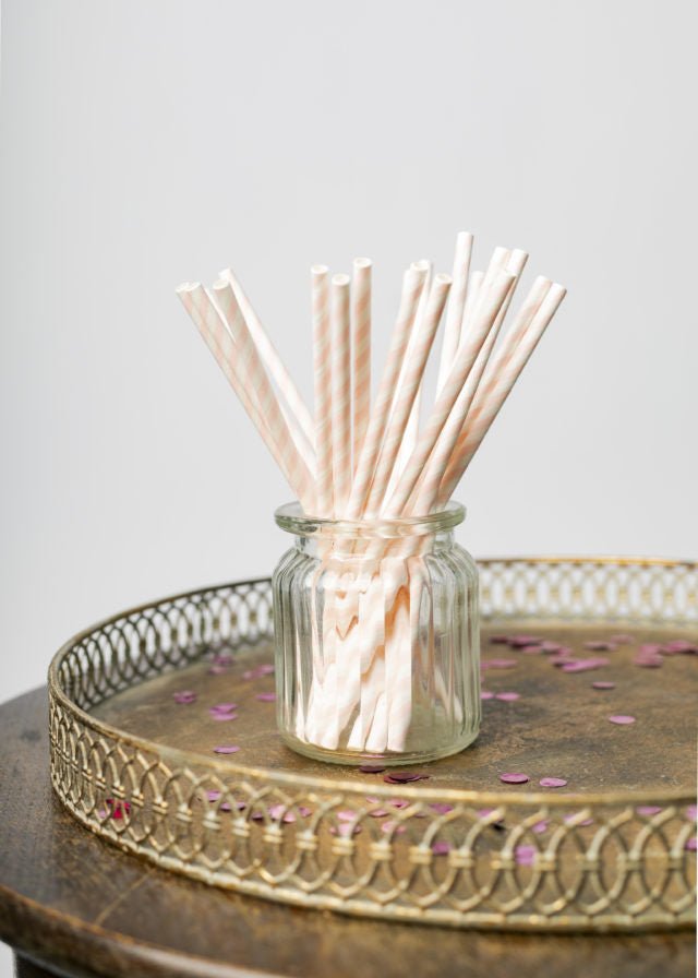 Pajitas de Papel Rosa Bebé Rayas 19.7cm 20pcs