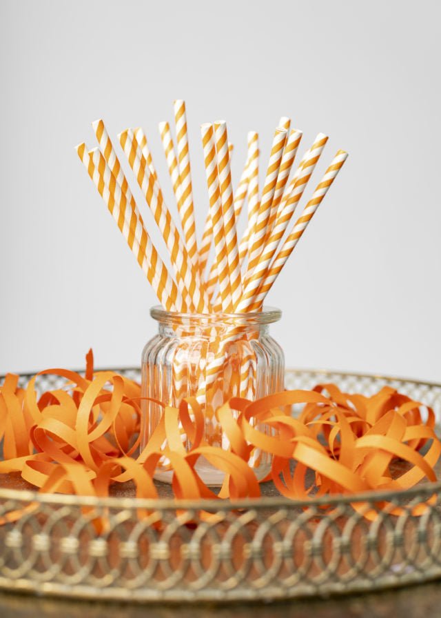 Pajitas de Papel Naranja Rayas 19.7cm 20pcs