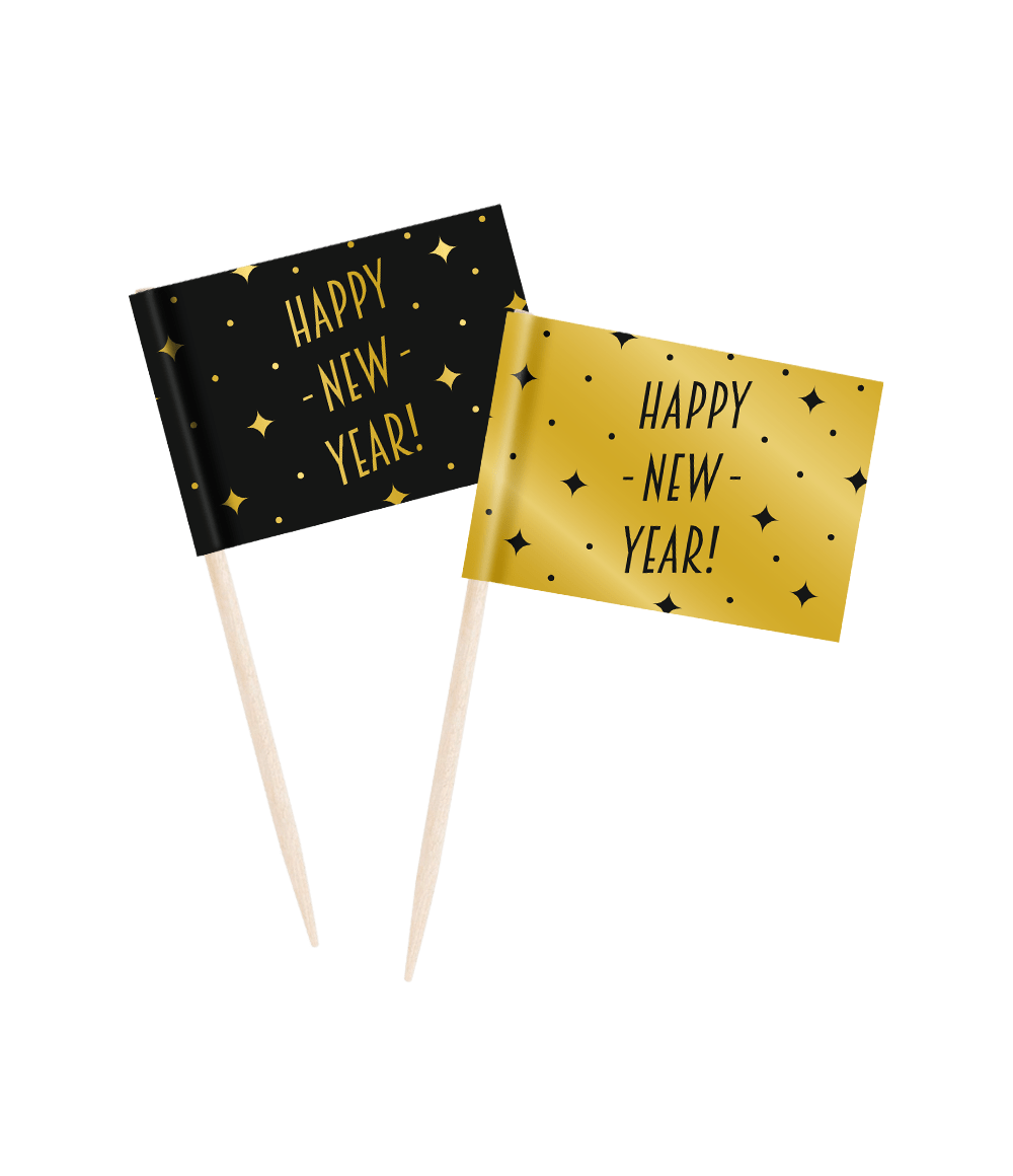 Palitos de cóctel Feliz Año Nuevo 6,5cm 50uds.