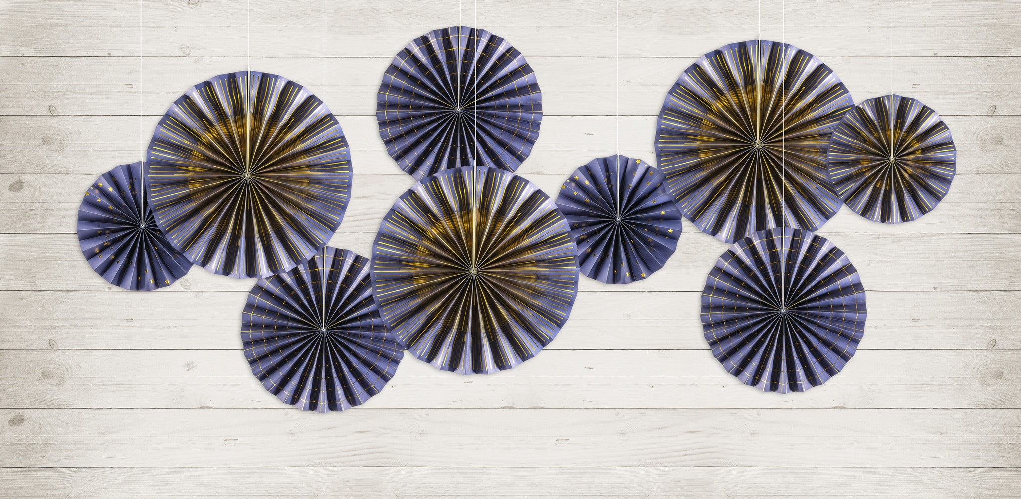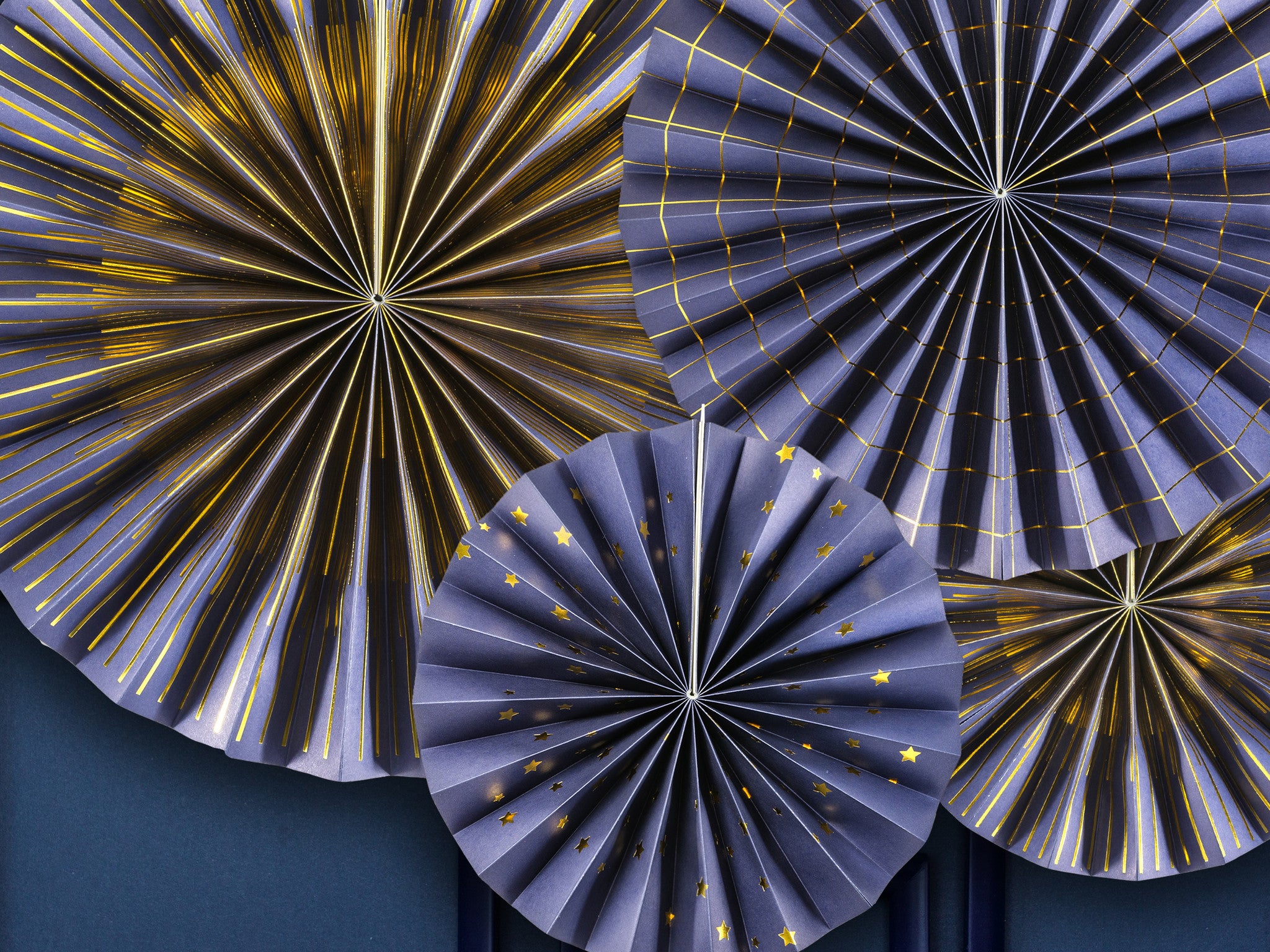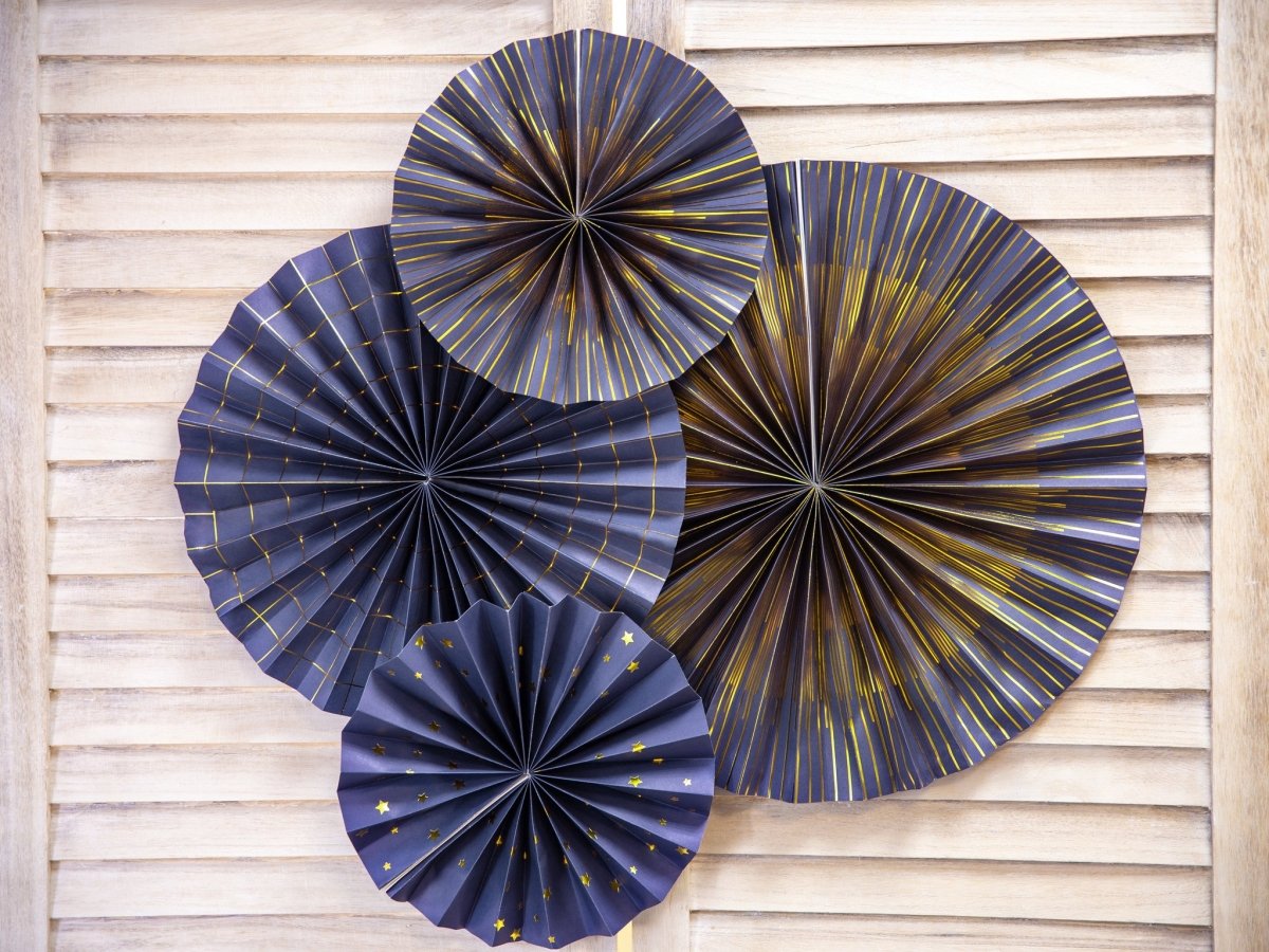 Abanicos de Papel Azul Set 23-40cm 4 piezas