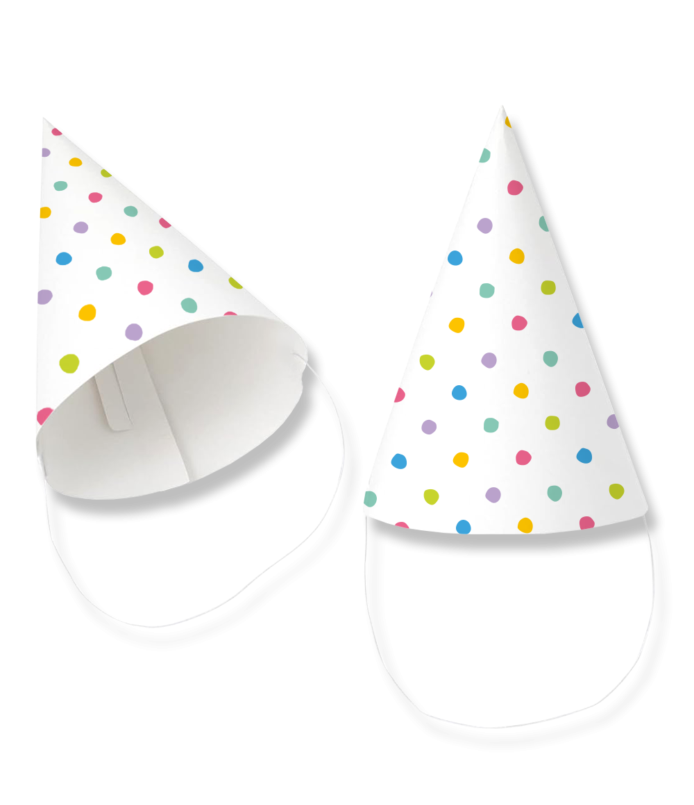 Con estos alegres Sombreros de papel - Lunares de fiesta , ¡todas las fiestas empiezan a chisporrotear desde el primer momento! El colorido estampado de lunares da a los sombreros un aspecto juguetón y veraniego, perfecto para fiestas infantiles, cumpleaños y fiestas temáticas alegres.