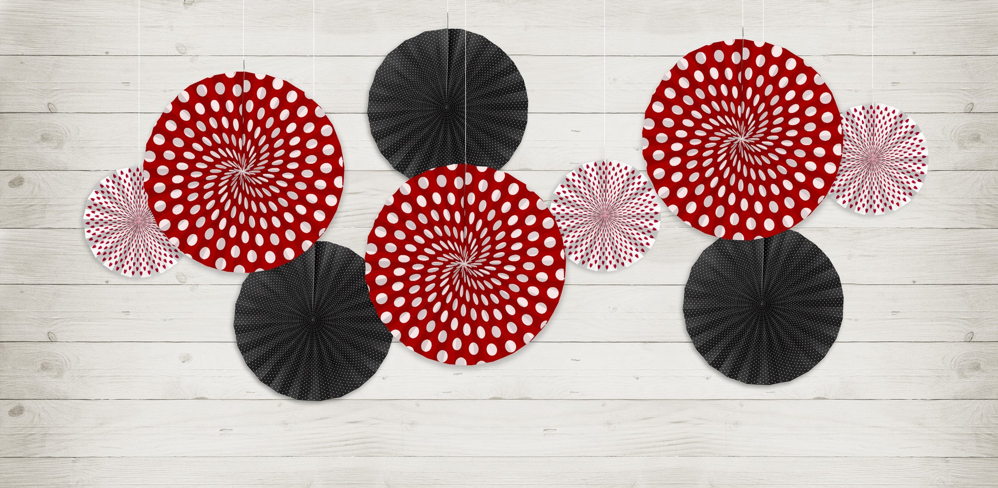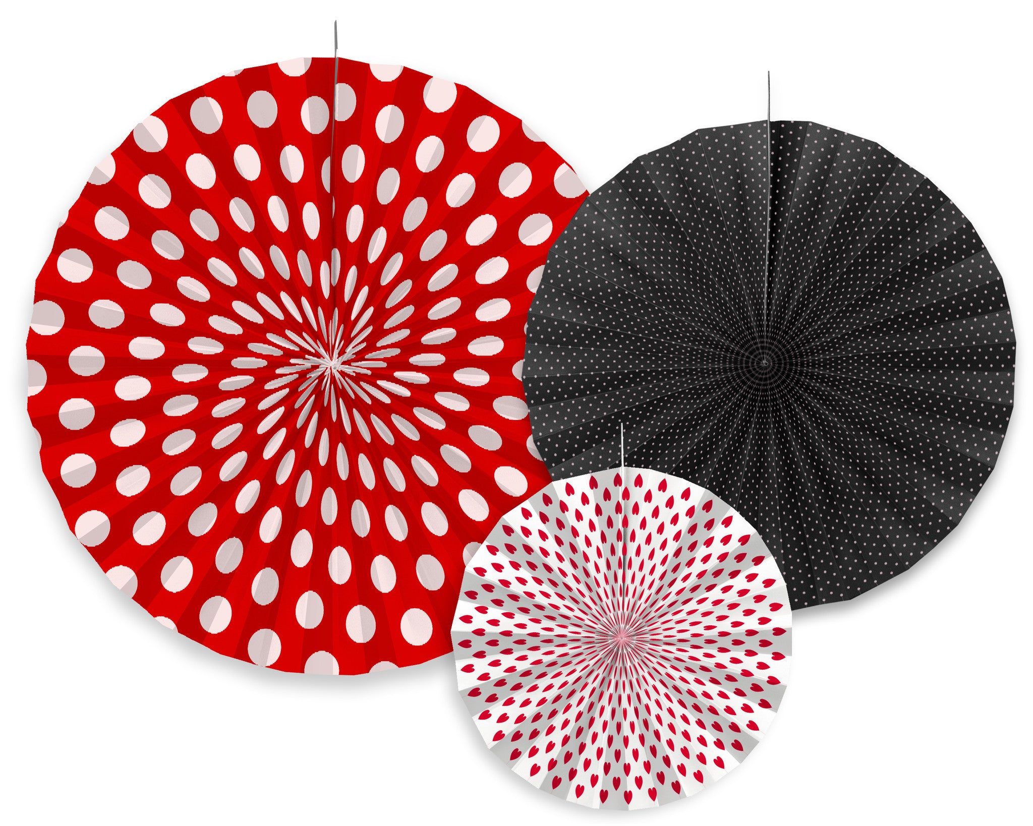 Abanicos de Papel Rojo Negro Set 23-40cm 3 piezas