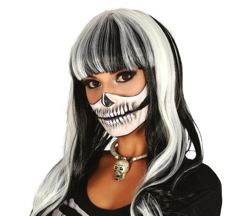 Peluca Halloween Flequillo Negro Blanco