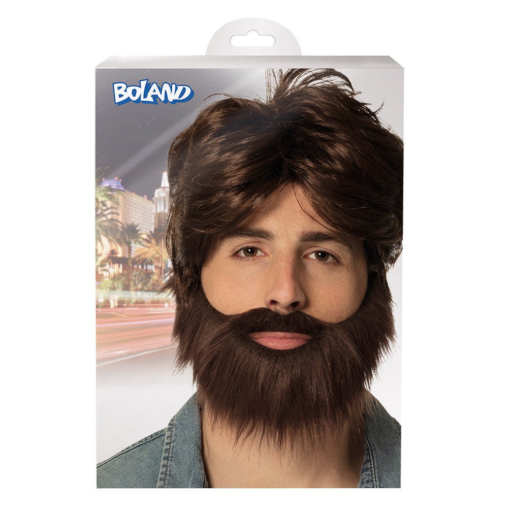 Peluca Pelo Corto y Barba Marrón
