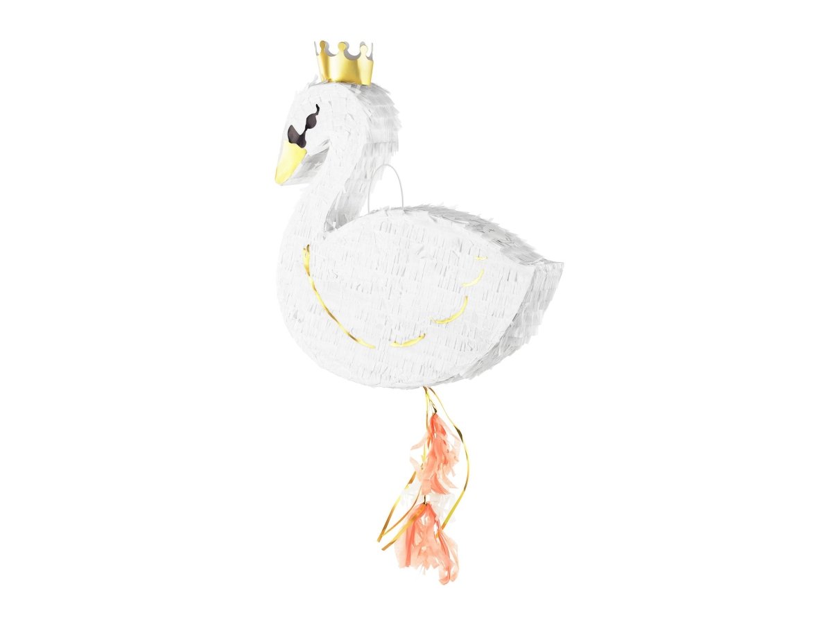 Contenido: Piñata con forma de cisne en color blanco, hasta aprox. llenar de golosinas, tamaño. 43,5 x 49,5 x 9 cm.