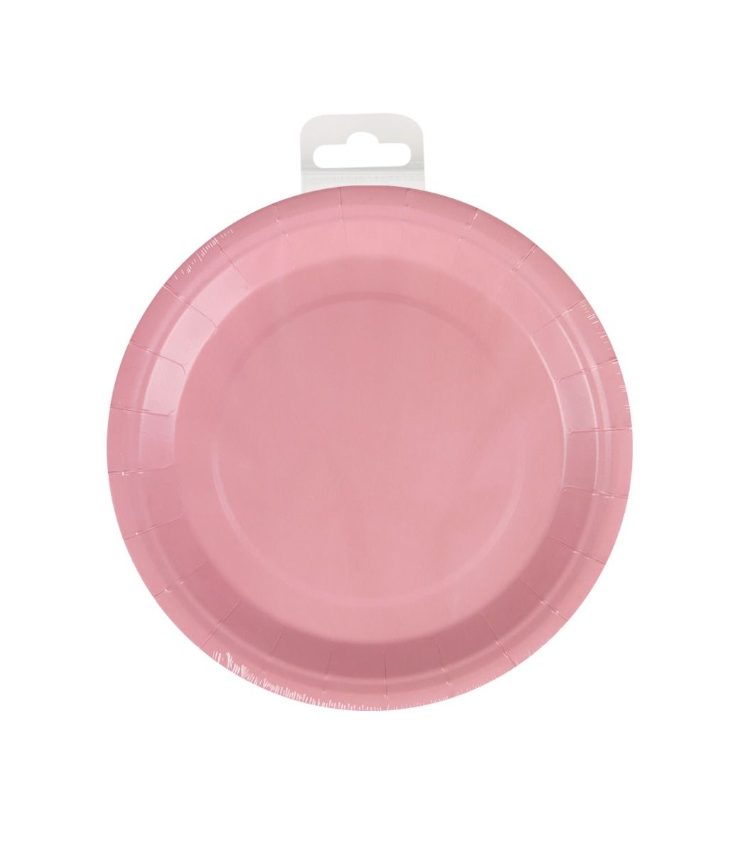 Los Platos - Rosa pastel son los artículos de decoración perfectos en una fiesta cuyo tema sea el color rosa pastel. Estos platos miden 23 x 23 cm, se presentan en paquetes de 8 y combinan perfectamente con los demás artículos de color rosa pastel, como el confeti, las servilletas, las tazas, los manteles, las cajas de aperitivos y la línea de banderines. Presenta estos artículos juntos para que al cliente le quede claro de inmediato en qué consiste esta colección. Estos platos son de papel, por lo que son ecológicos