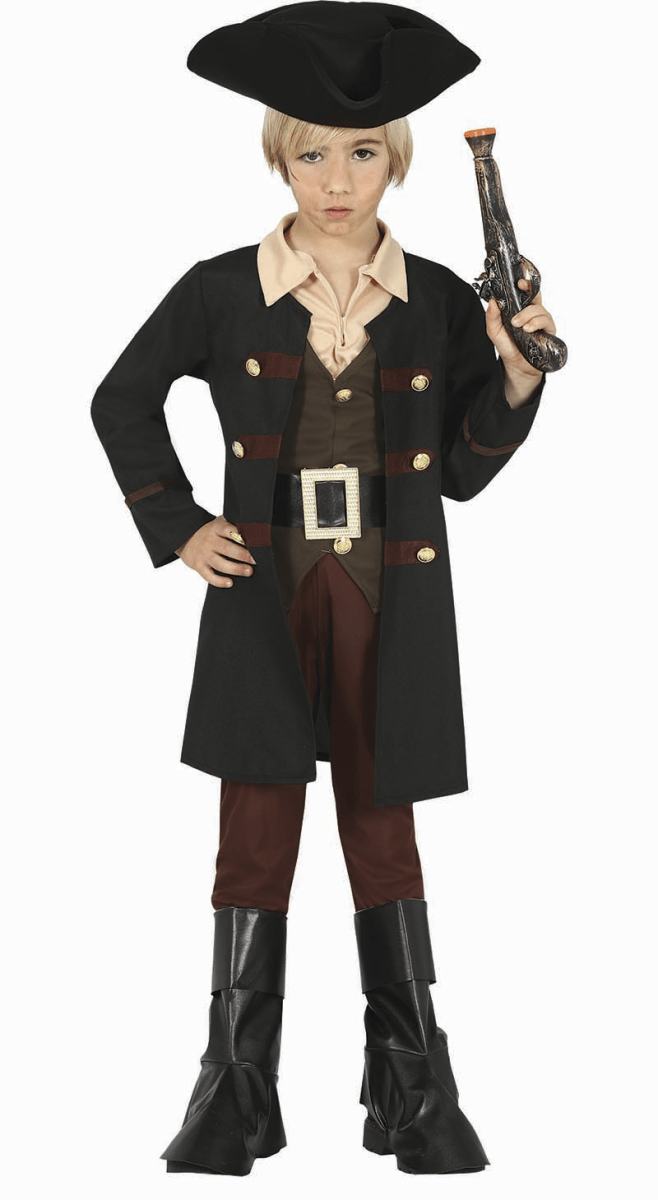 Contenido: sombrero, camisa con chaleco y cinturón, chaqueta, pantalones, botas con gorro