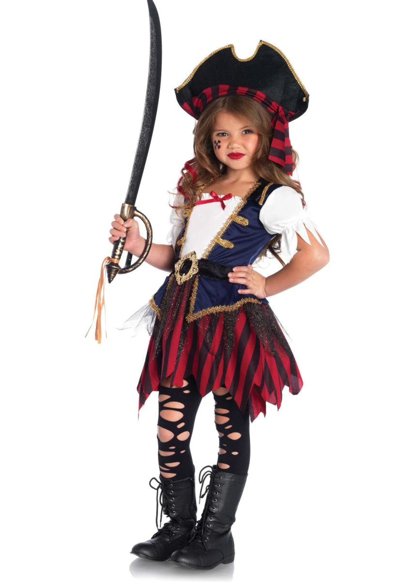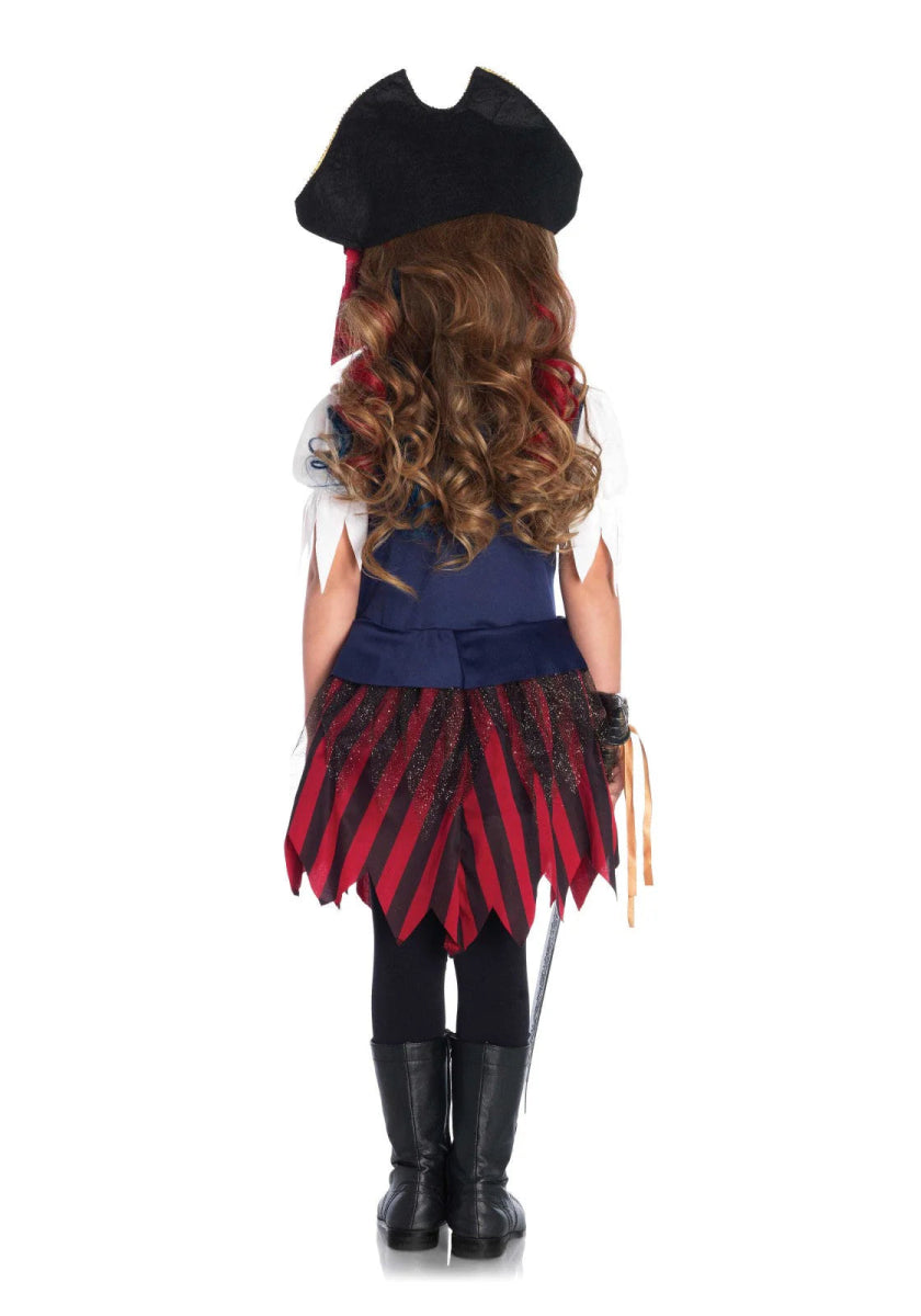 Las niñas pequeñas se convierten en grandes aventureras con este Disfraz de Pirata del Caribe. Este conjunto pirata de 2 piezas incluye un vestido con adornos dorados y cinturón y un gorro pirata a juego con pañuelo. ¡Perfecto para convertirte en el capitán de tu propio barco! ⚓🌊