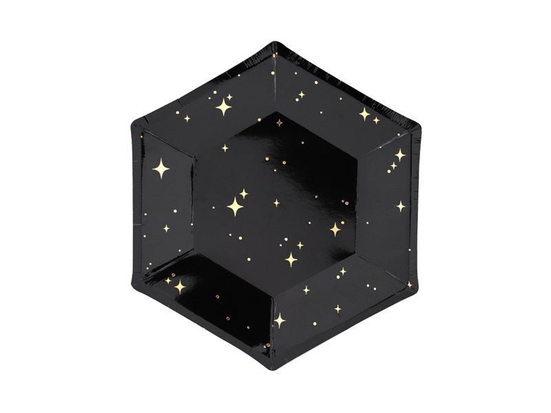 Platos Negros Estrellas Doradas 20cm 6pcs