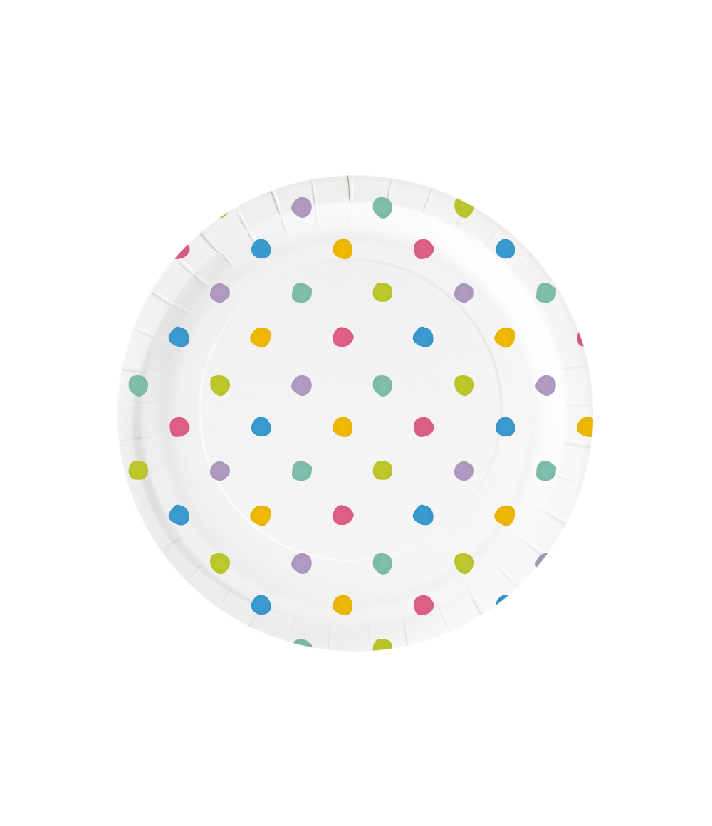 Los platos vienen por 6 unidades y combinan a la perfección con las tazas, servilletas, globos y otros artículos de la colección Party Dots. Así podrás crear fácilmente un conjunto elegante y colorido para cada fiesta.