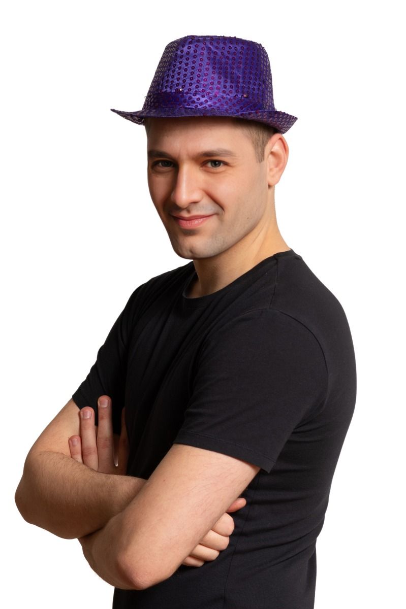 Sombrero Violeta Lentejuelas Luz