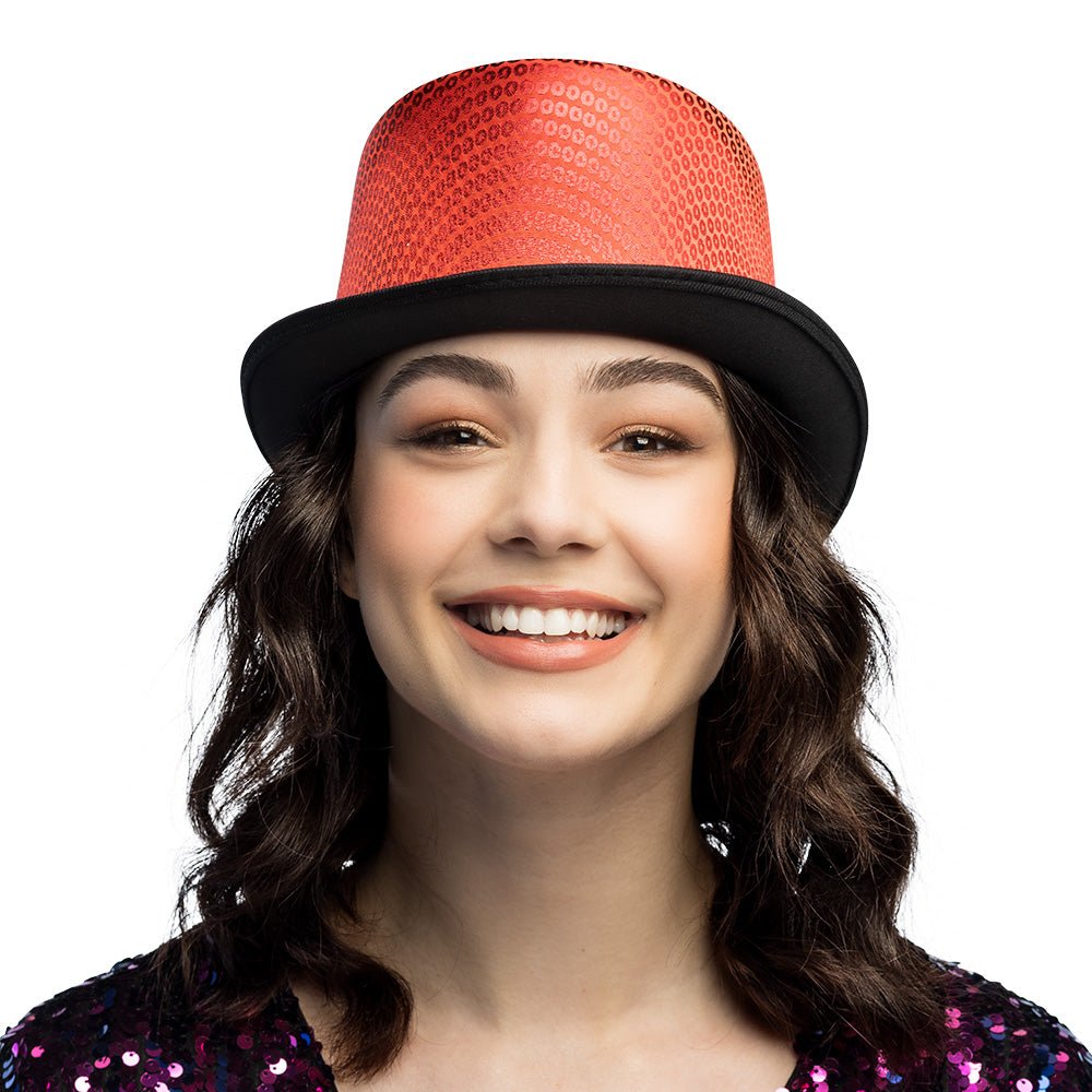 Dale a tu atuendo un espectacular impulso con el Sombrero Capricho Rojo. Este llamativo sombrero de copa es perfecto para conquistar la pista de baile en carnaval, actuar o dar la bienvenida al nuevo año con estilo.