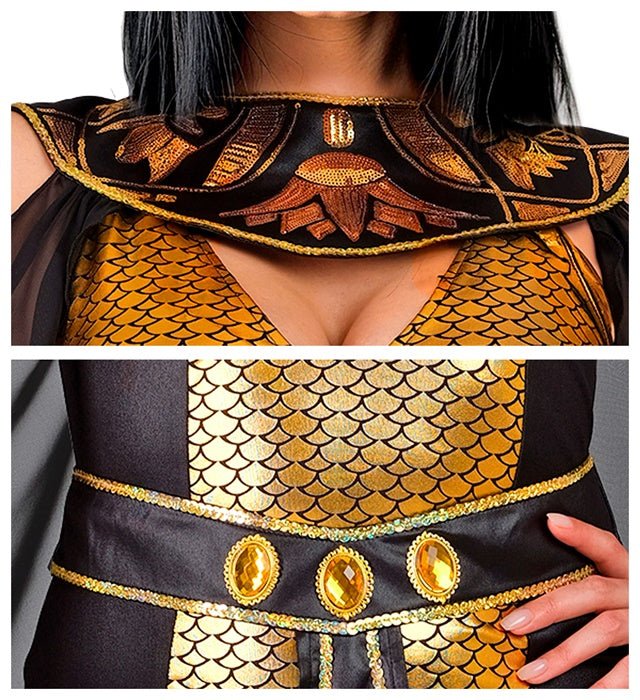 Siéntete como una auténtica faraona con este elegante Disfraz de reina egipcia para mujer. Un look elegante y poderoso inspirado en el antiguo Egipto.