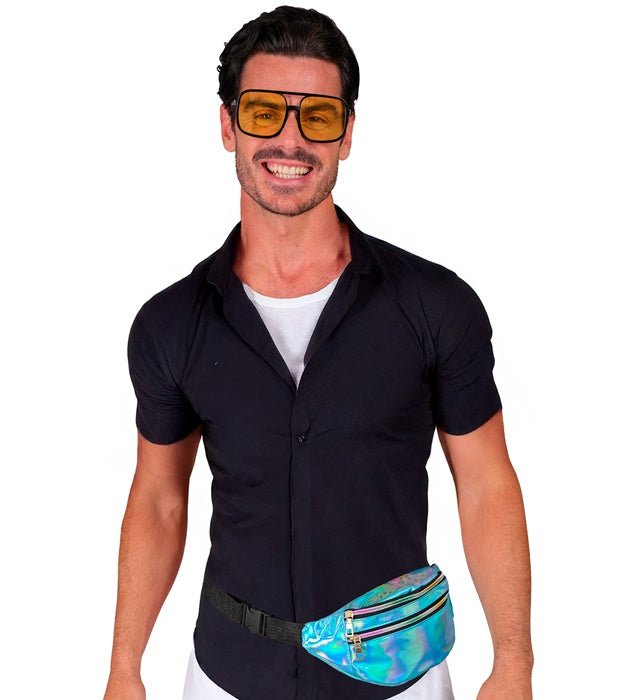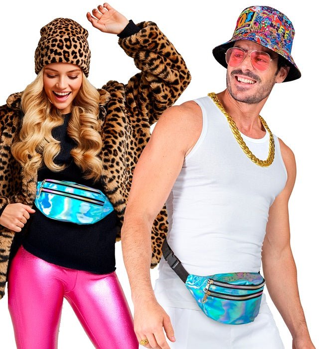Haz que tu atuendo llame la atención con esta moderna riñonera azul holográfica. Un accesorio práctico y elegante para fiestas y para el día a día