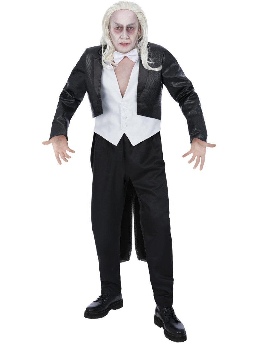 Con este disfraz de Riff Raff, crearás un atuendo totalmente reconocible y con estilo. La chaqueta, el chaleco y la pajarita se combinan para crear un look llamativo y juguetón inspirado en el icónico personaje del Rocky Horror Show.