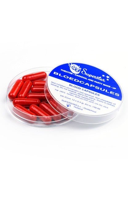Las cápsulas de sangre son seguras para uso interno. La cápsula se deshace en la boca. Para crear una hemorragia oral, mezcla el contenido en polvo de la cápsula con saliva. No debe utilizarse en niños menores de 12 años.