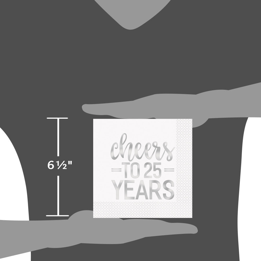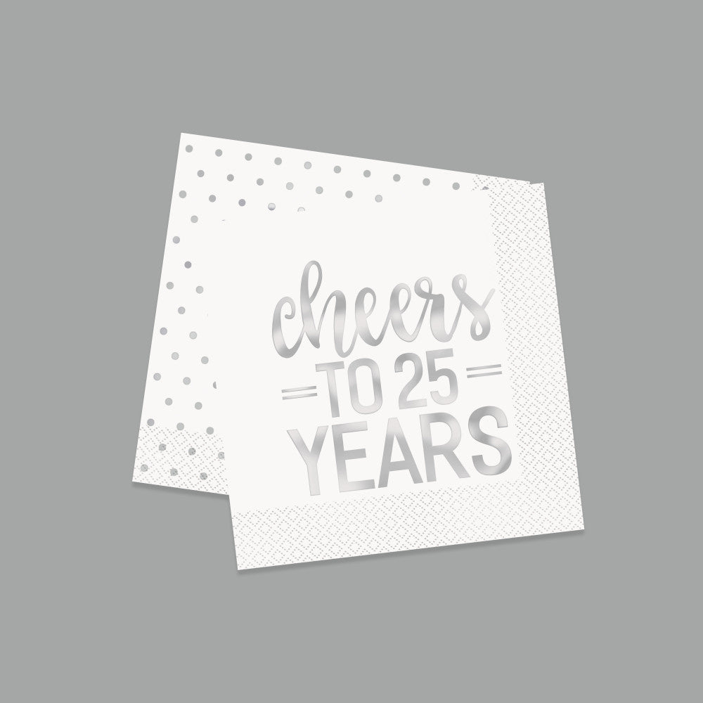 Servilletas Cheers To 25 Year Plata 25cm 16pcs