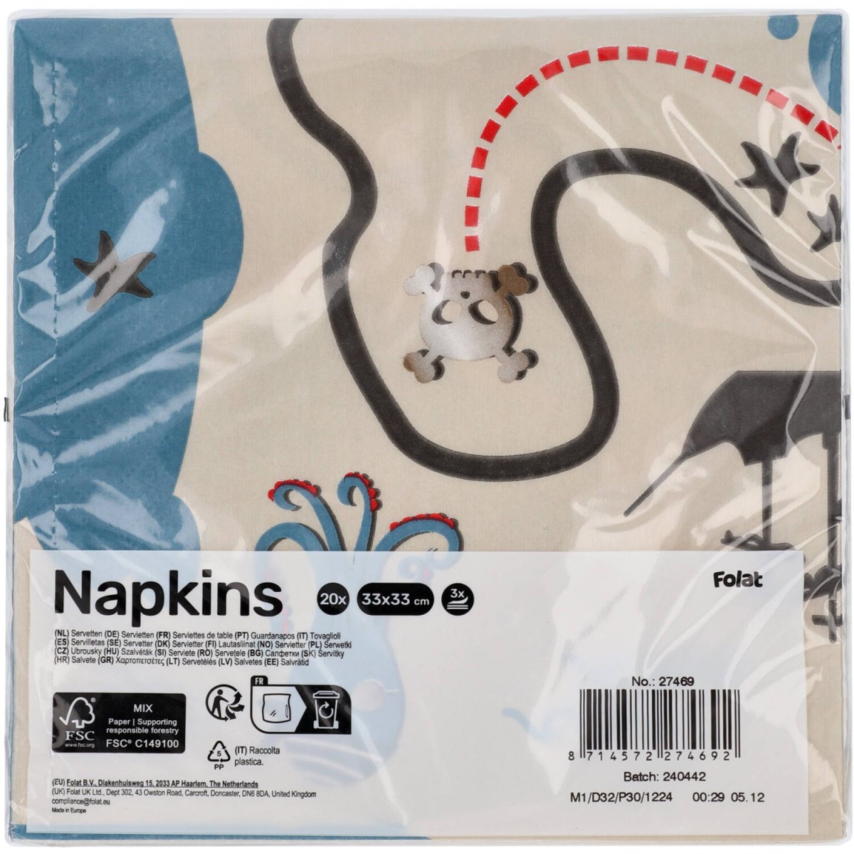 Para los verdaderos piratas. Servilletas - Fiesta pirata - 33 x 33 cm - 20 unidades. Contenido: 20 servilletas. Para utilizar, por ejemplo, en las siguientes ocasiones de fiesta/fiesta: Fiesta infantil, Cumpleaños, Fiesta temática. Servilletas de papel con un divertido y aventurero dibujo de Piratas. Estas servilletas miden 33 x 33 cm y pertenecen a la colección Fiesta Pirata de