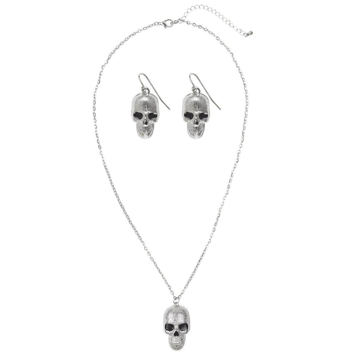 Set Accesorios Halloween Calavera Plateada 3 piezas