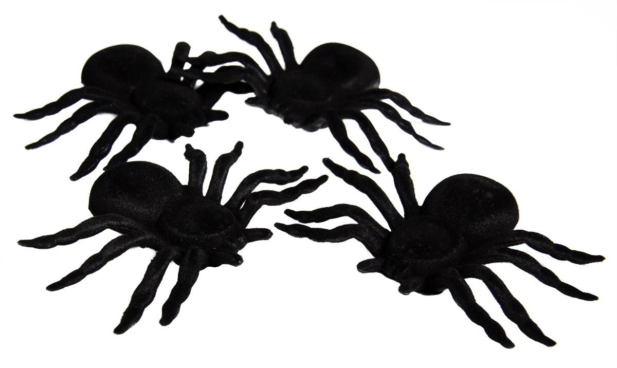 Juego de 4 arañas. Contenido: 4 arañas. Por ejemplo, para utilizar durante las siguientes fiestas/fiestas Halloween. Las arañas miden 7 x 11 x 2 cm. El artículo es de plástico.