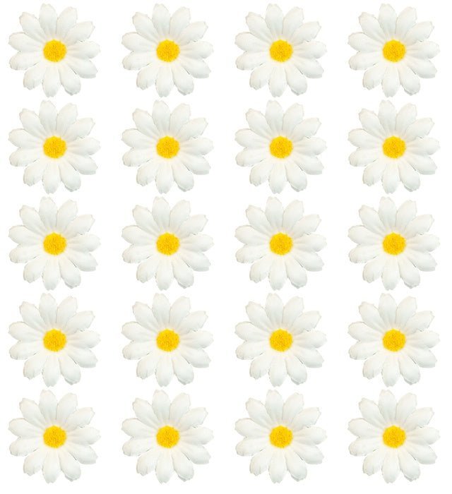 Aporta un aspecto alegre y natural a tu hogar, eventos o proyectos creativos con este set de 20 margaritas decorativas. Perfectas para arreglos florales, manualidades o decoraciones temáticas.