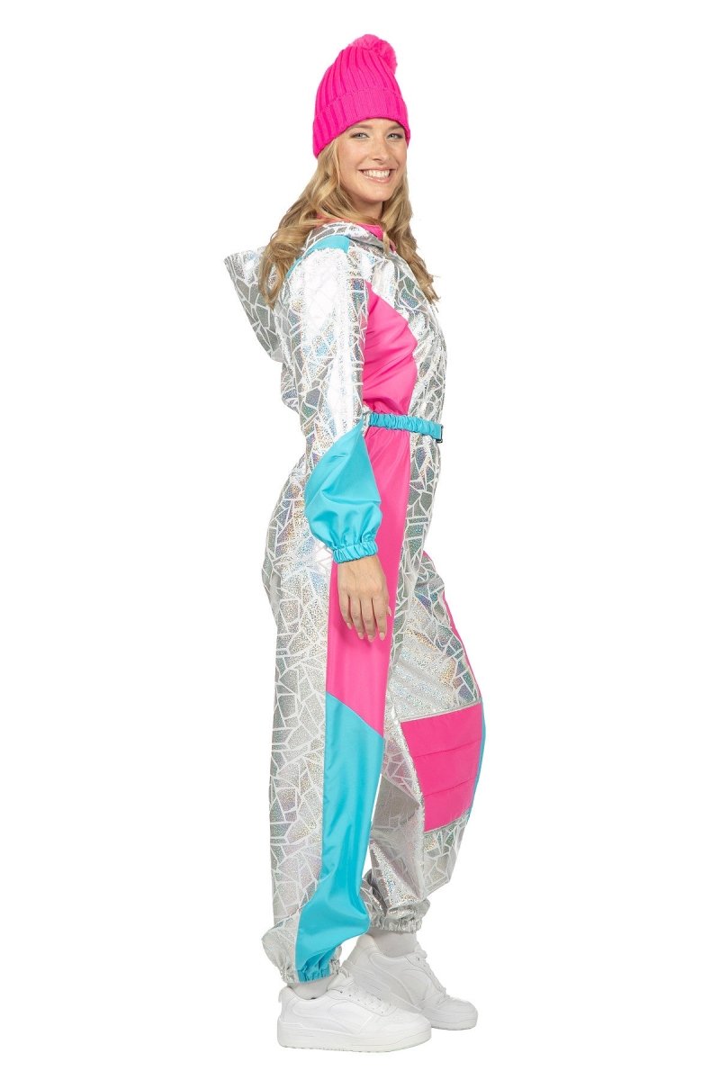 Ve a las pistas con estilo o acapara todas las miradas en una fiesta de invierno con este traje de esquí plateado de lujo. Un conjunto moderno y cómodo con un acabado brillante.