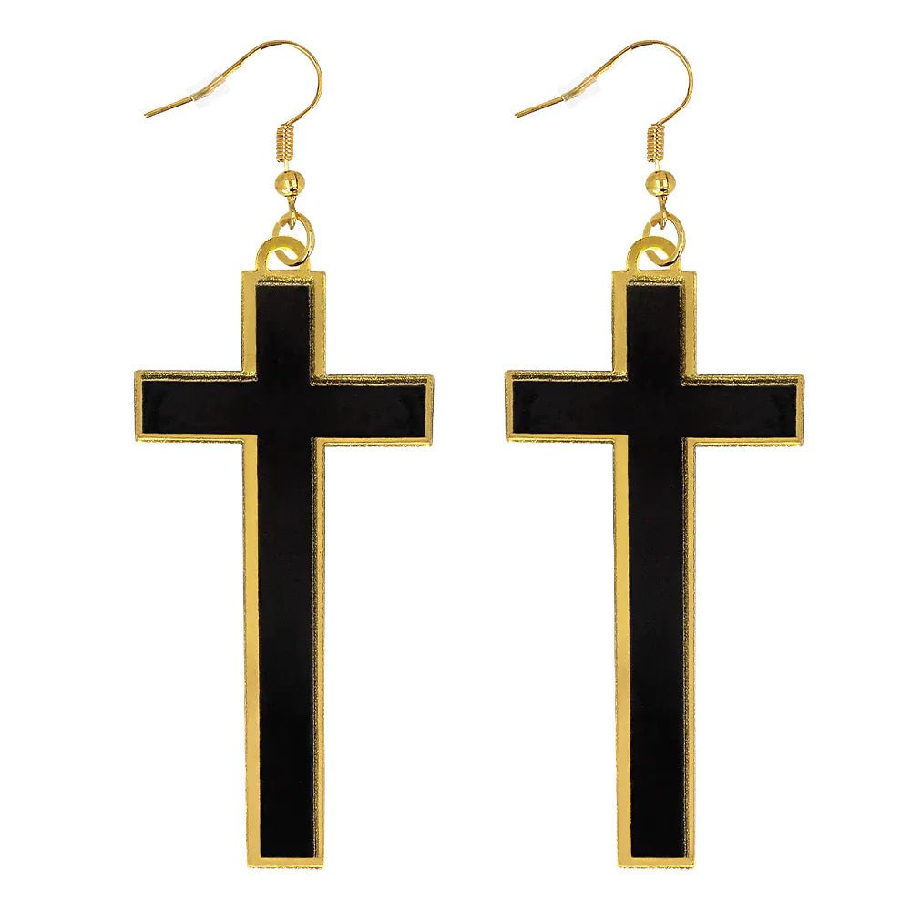 Asiste a tu próxima fiesta como santa o monja pecadora con estos llamativos pendientes de cruz. Un toque final clásico para carnaval, una mala fiesta o una fiesta de disfraces.