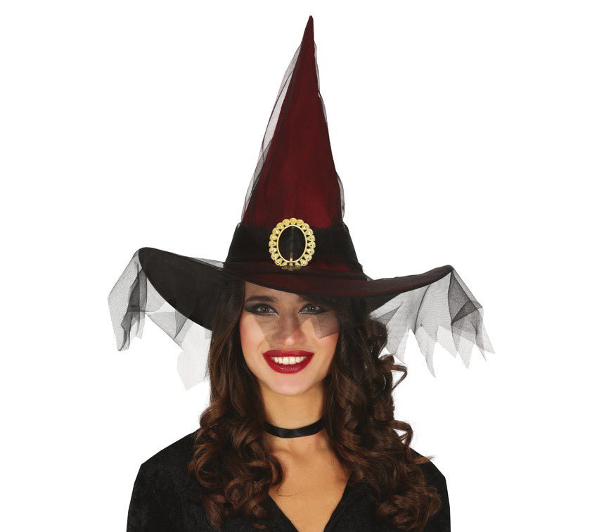 Halloween Sombrero de bruja Velo Rojo