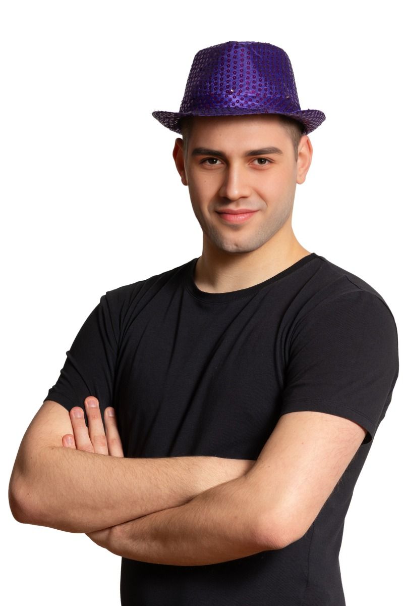 Gorro de lentejuelas morado con luz incl Pilas - Pack de 6