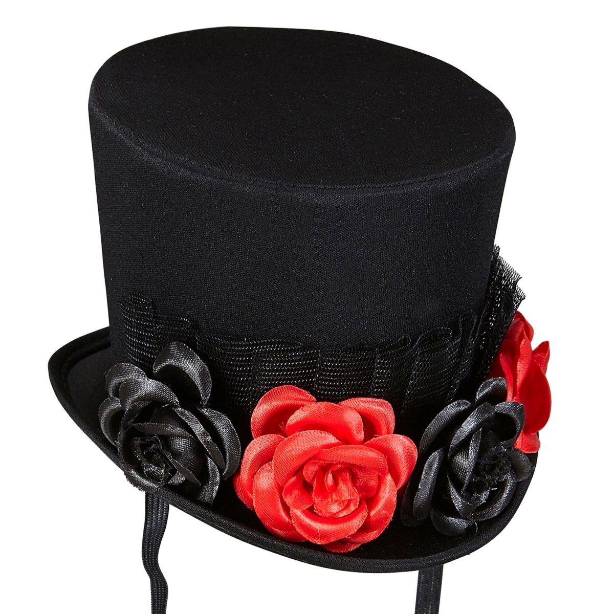 Contenido del paquete: mini sombrero de copa con tul, 4 rosas