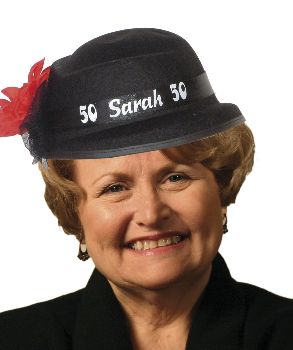 50 Años Sombrero Bombín Sarah con Flor. Contenido: 1 sombrero. Para usar, por ejemplo, en las siguientes ocasiones de fiesta/fiesta: Cumpleaños, Sarah. Tamaño del sombrero: 59 cm. El artículo está hecho de fieltro.
